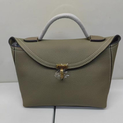 Hotend Solid color cowhide buckle bag-Elephant gray