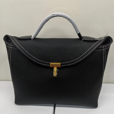 Hotend Solid color cowhide buckle bag-Elephant gray